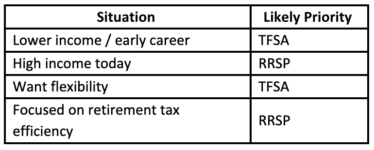 If you’re early in your career or earning less income, an RRSP deduction may not be especially valuable today. A TFSA allows tax-free growth without “using” your deduction at a lower rate.