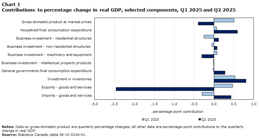 Last month, preliminary forecasts suggested Canada’s economy had contracted by 1.6% in Q2, raising fears of a potential recession (Rana, 2025). However, final data from Statistics Canada later showed a smaller, but still significant, 0.4% contraction, making it the largest quarterly decline in nearly a decade outside of the pandemic period (Gellatly & McCormack, 2025).